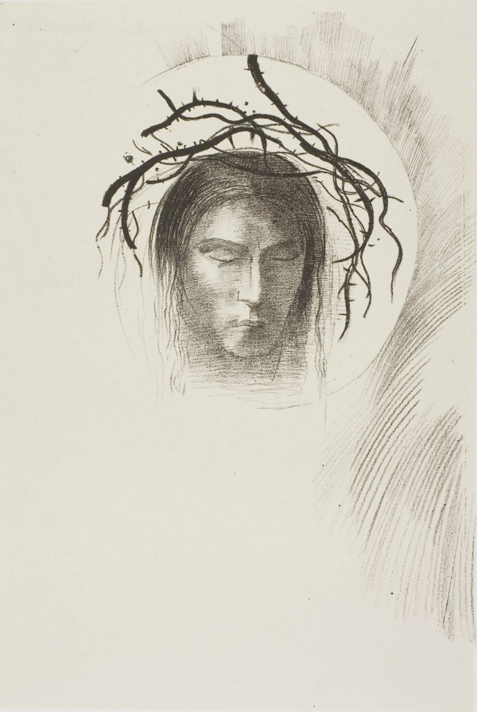 “Day Appears at Last… and in the Very Disk of the Sun Shines the Face of Jesus Christ, plate 24 of 24” by Odilon Redon, French, 1896 ** John 19:1-3